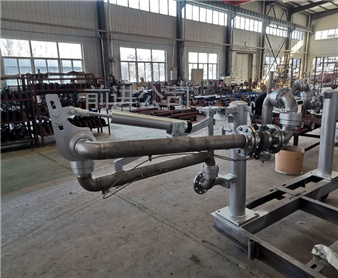 *典型的槽車底部裝卸鶴管,與槽車用快速接頭或者法蘭聯(lián)接,采用五個旋轉(zhuǎn)接頭。介質(zhì)由槽車卸油口經(jīng)鶴管自上而下流入管線內(nèi),采用重力作用下的自流方式就可卸車,接口高度較高時